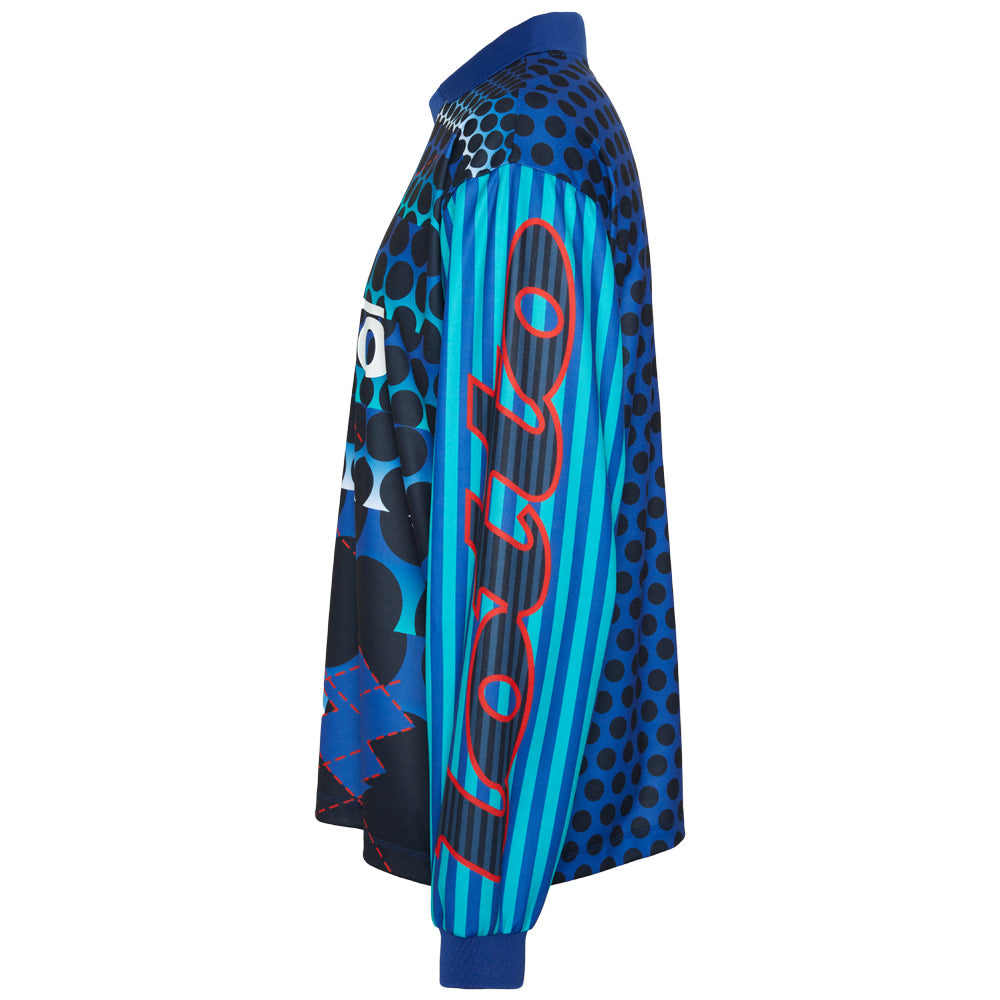 Das Lotto Calcio 93 Goalkeeper Trikot bringt den wilden 90s-Keeper-Style zurück auf die Straße. Fette Allover-Grafiken, harte Kontraste und auffällige Patterns zitieren die ikonische Lotto-Ära – neu gedacht für heute.