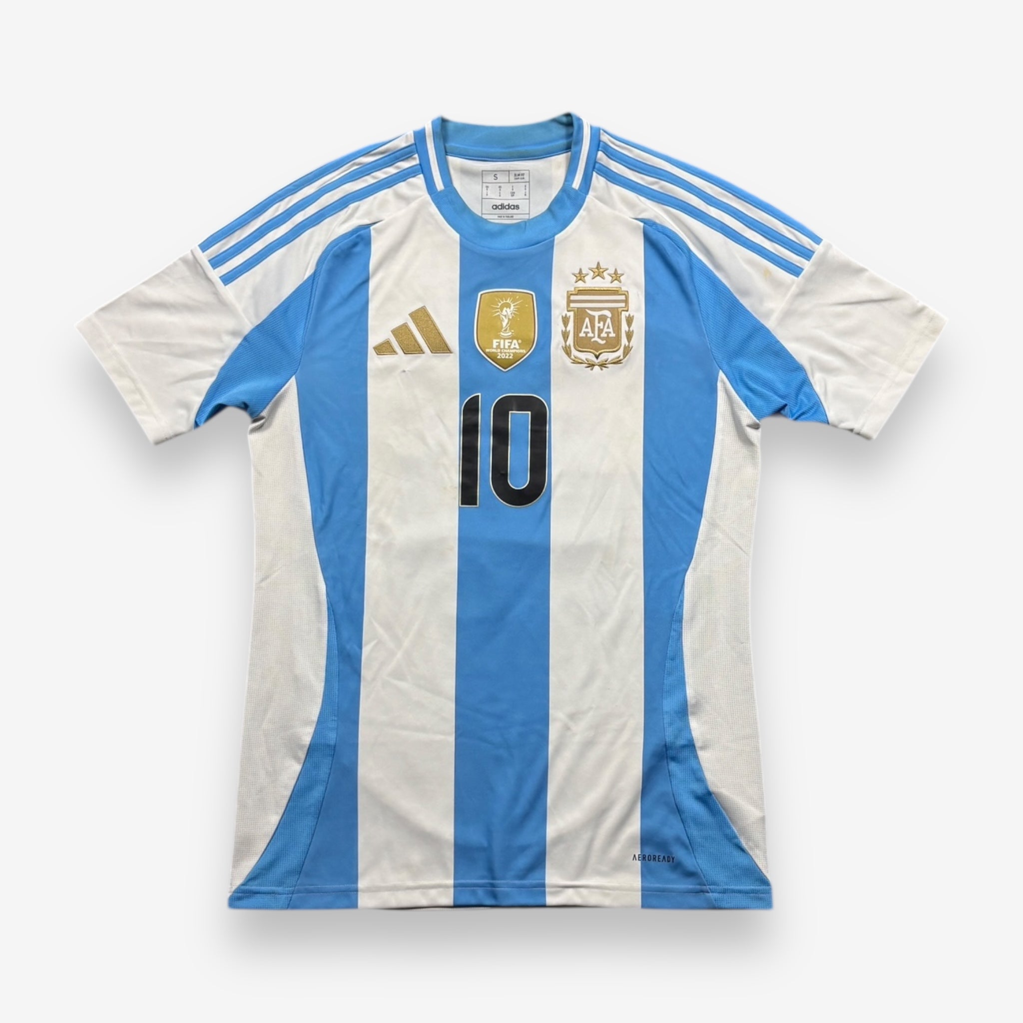 Bei der Copa America 2024 sind die Legenden der argentinischen Nationalmannschaft um Lionel Messi mit diesem wunderschönen Trikot der Marke Adidas aufgelaufen.