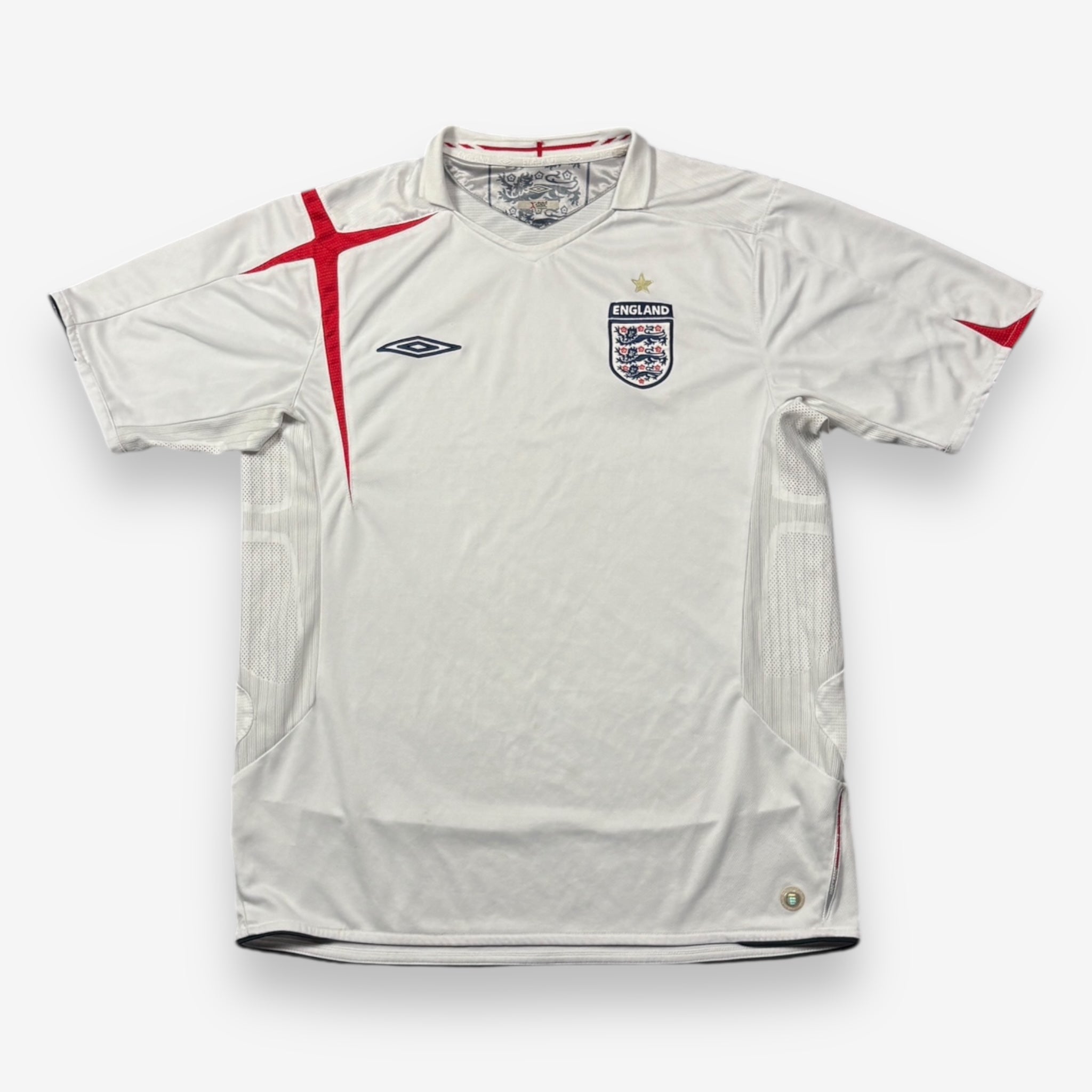 Bei der WM 2006 sind die Legenden der englischen Nationalmannschaft mit diesem wunderschönen Trikot der Marke Umbro aufgelaufen.