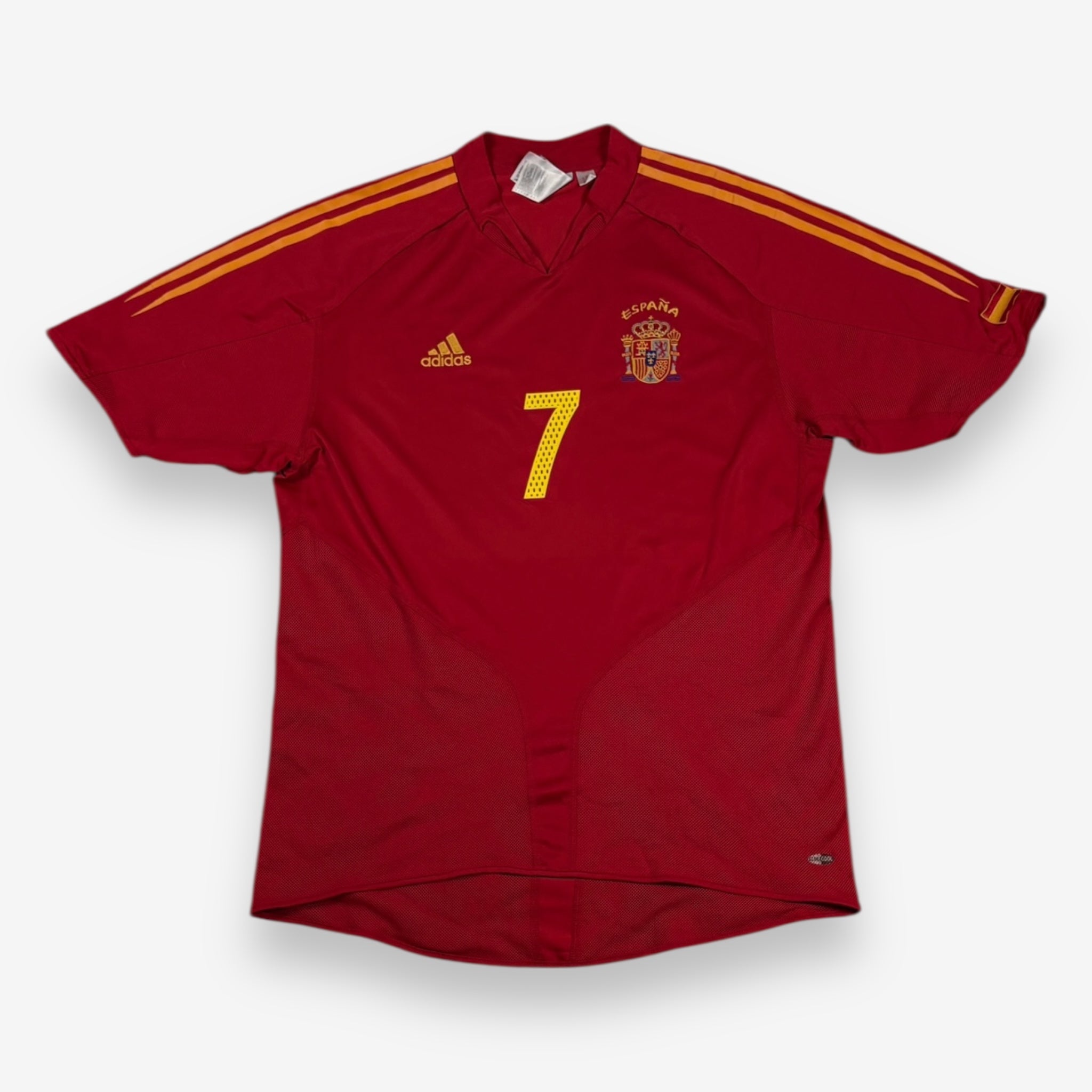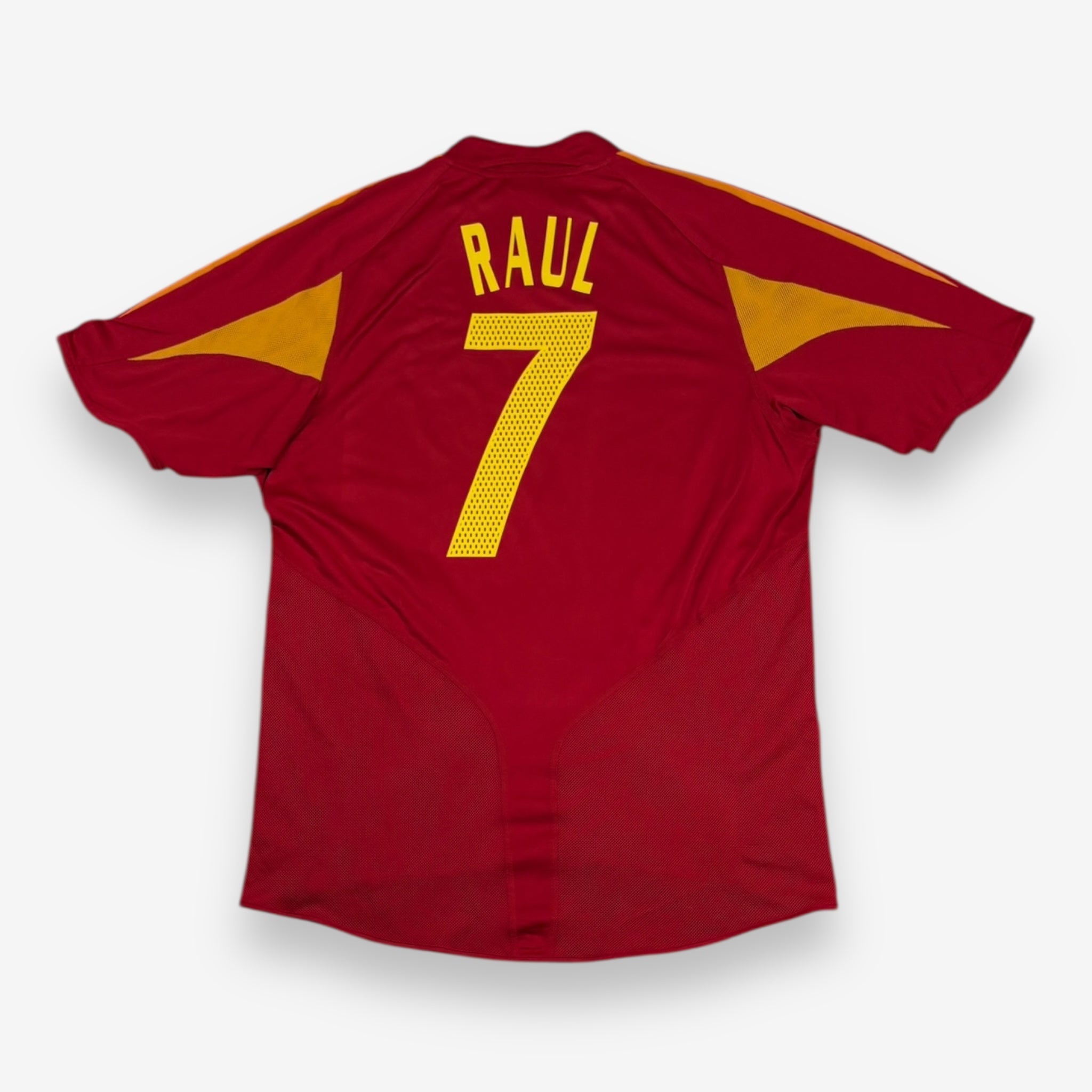 Bei der EM 2004 sind die Legenden der spanischen Nationalmannschaft um Superstar Raul mit diesem wunderschönen Trikot der Marke Adidas aufgelaufen.