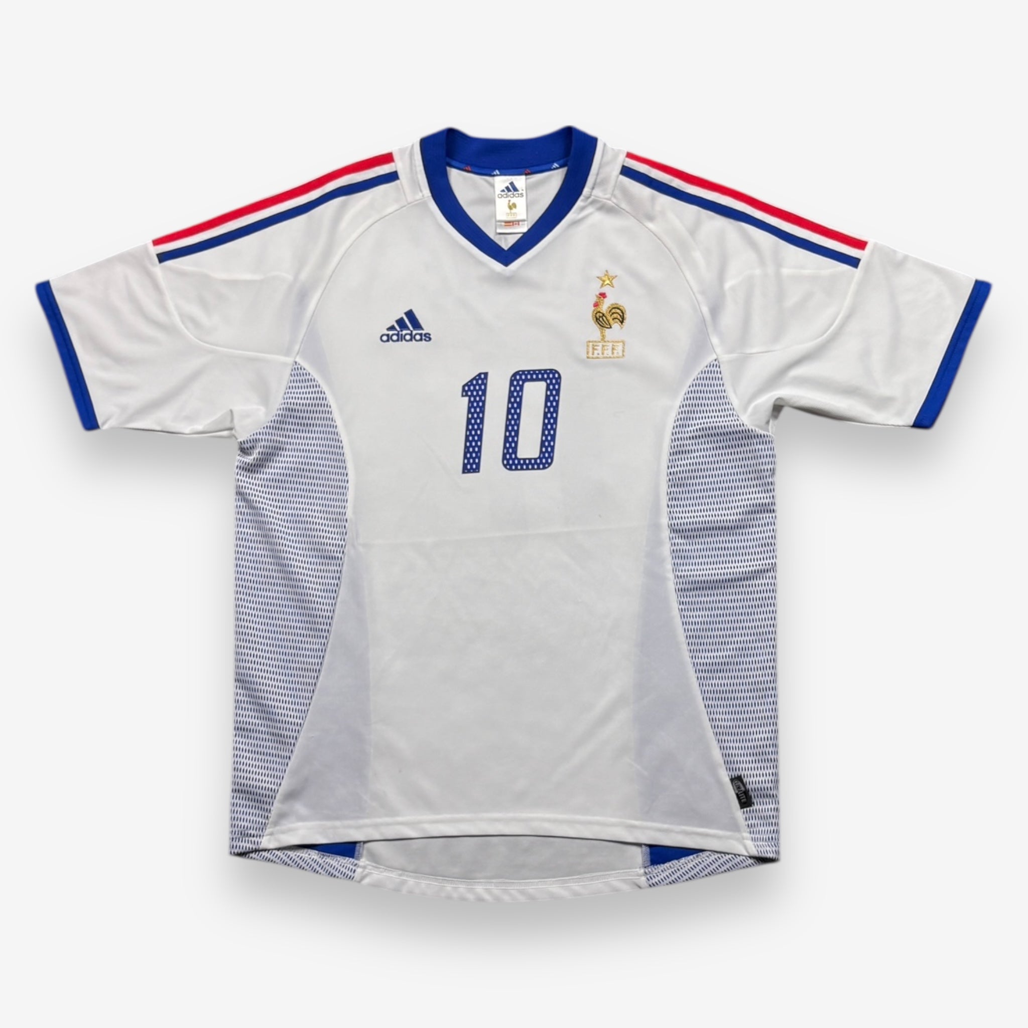 Bei der WM 2002 sind die Legenden der französischen Nationalmannschaft um Legende Zinedine Zidane mit diesem wunderschönen Trikot der Marke Adidas aufgelaufen.
