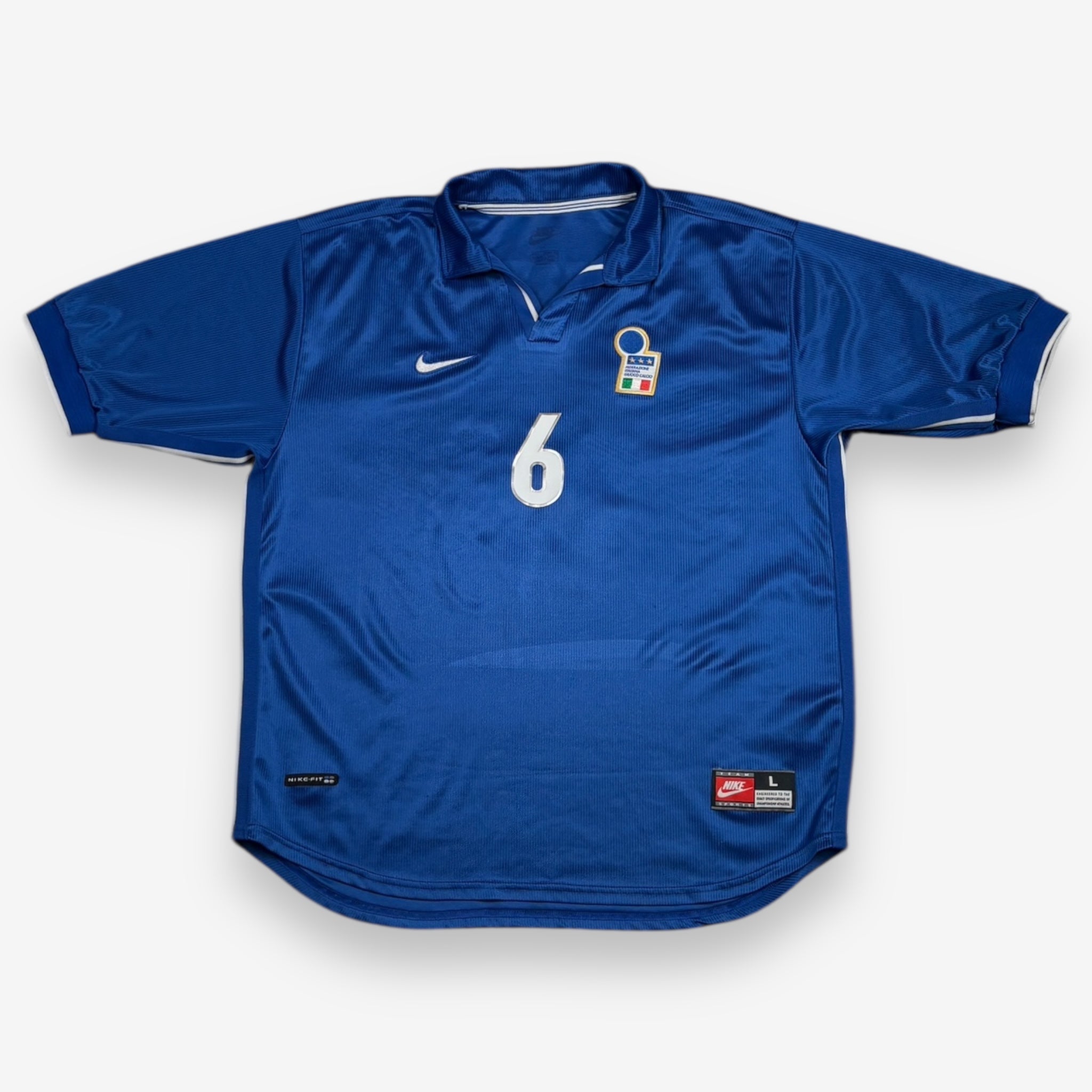 Bei der WM 1998 sind die Legenden der italienischen Nationalmannschaft um Alessandro Nesta mit diesem wunderschönen Trikot der Marke Nike aufgelaufen.